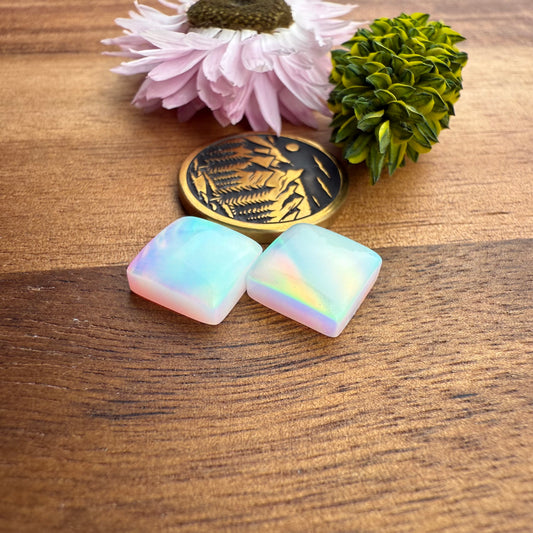 Aurora Opal Cabochon Pair - approx. 8 x 8 mm
